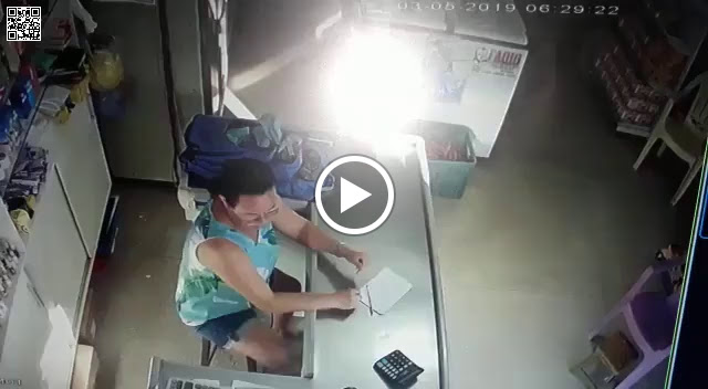 Tudo foi registrado pelas câmeras de vigilância do comércio. Assista: