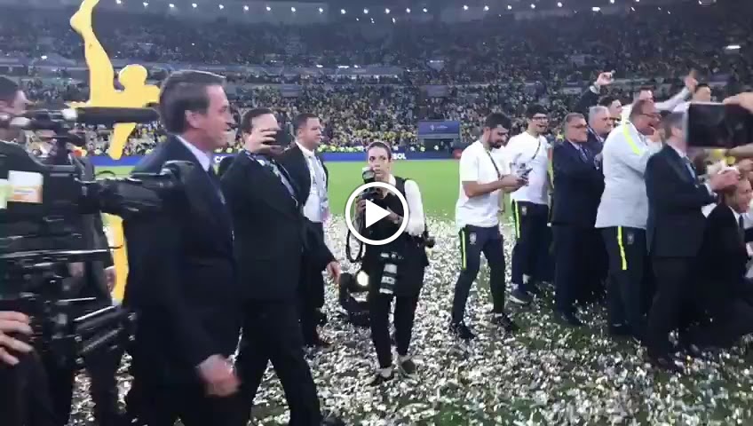 O próprio Bolsonaro postou em suas redes sociais o momento em que entrou no campo para segurar a taça ao lado dos atletas. Na imagem postada pelo presidente, ouvem-se gritos de “mito”.