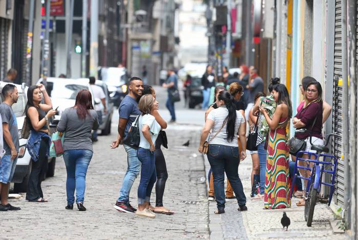 Movimentação de pessoas e veículos nas calcadas e ruas de acesso a Av. Rio Branco, no Centro do Rio - Daniel Castelo Branco