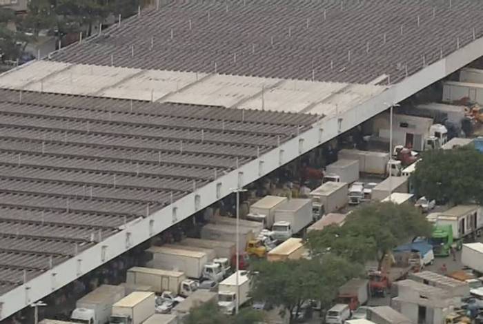 Caminhões fazem fila na entrada da Ceasa no Rio. Em Belo Horizonte, a polícia investigou homem que fez um vídeo denunciando um falso desabastecimento, em março - Reprodução / TV Globo